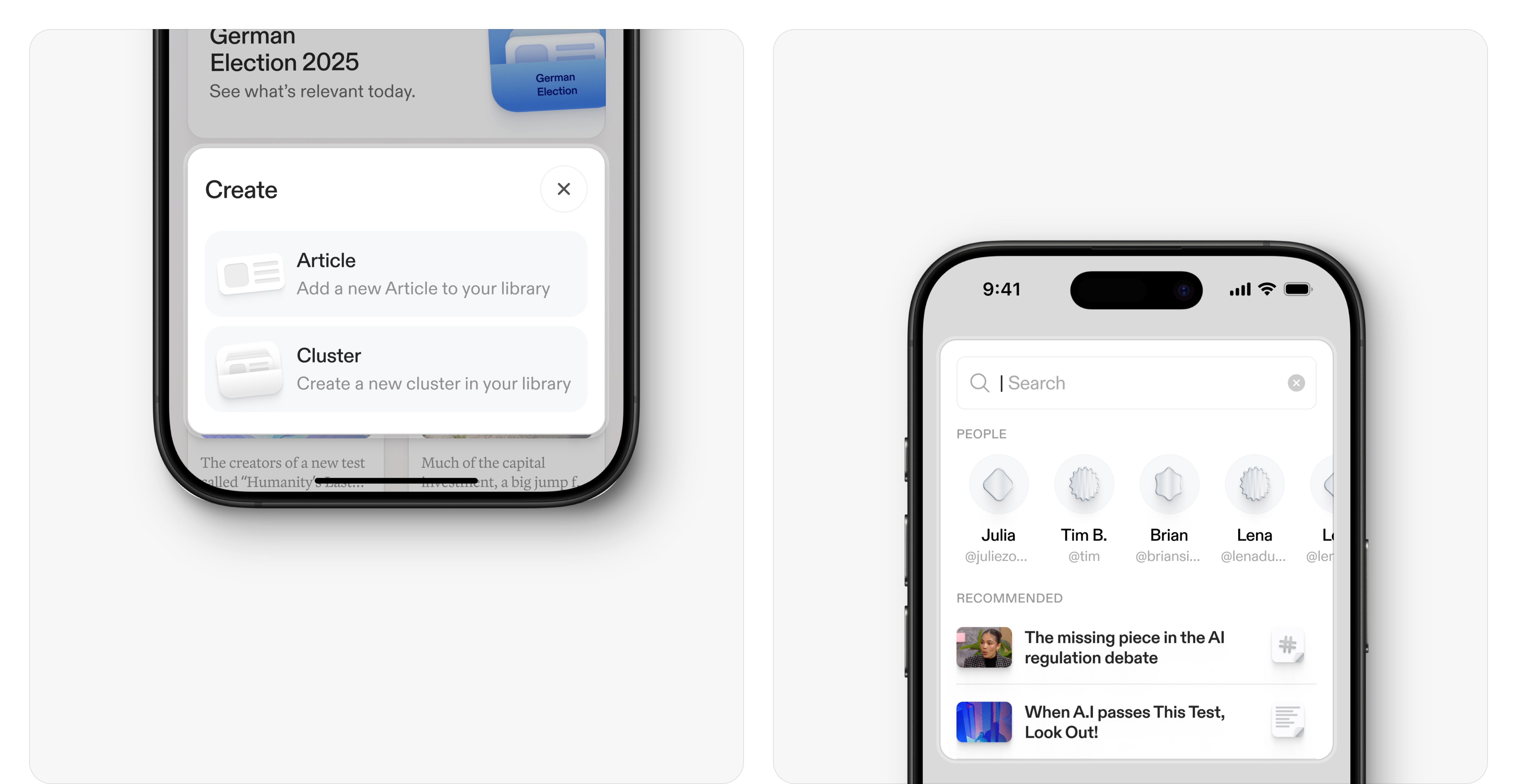 In today's world, countless pieces of information bombard us—news, opinions, and data from all conceivable sources. Consuming this on social media often lacks context, as the structure of social media, aided by algorithms, quickly creates echo chambers and knowledge bubbles. In these, opinions can rapidly radicalize, and fake news can spread swiftly. This is where BEN comes in: our app collects content from various platforms, connects them, and thus establishes a broader context.